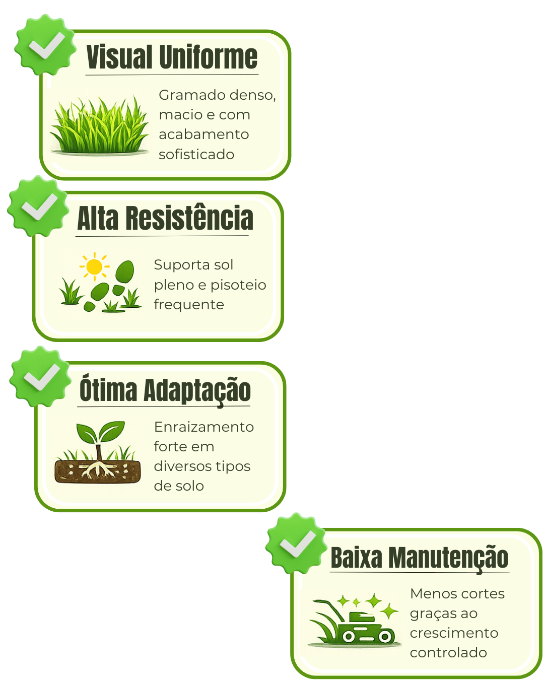 A Grama Esmeralda é a escolha nº 1 no Brasil graças à sua alta adaptação a diferentes solos e climas.