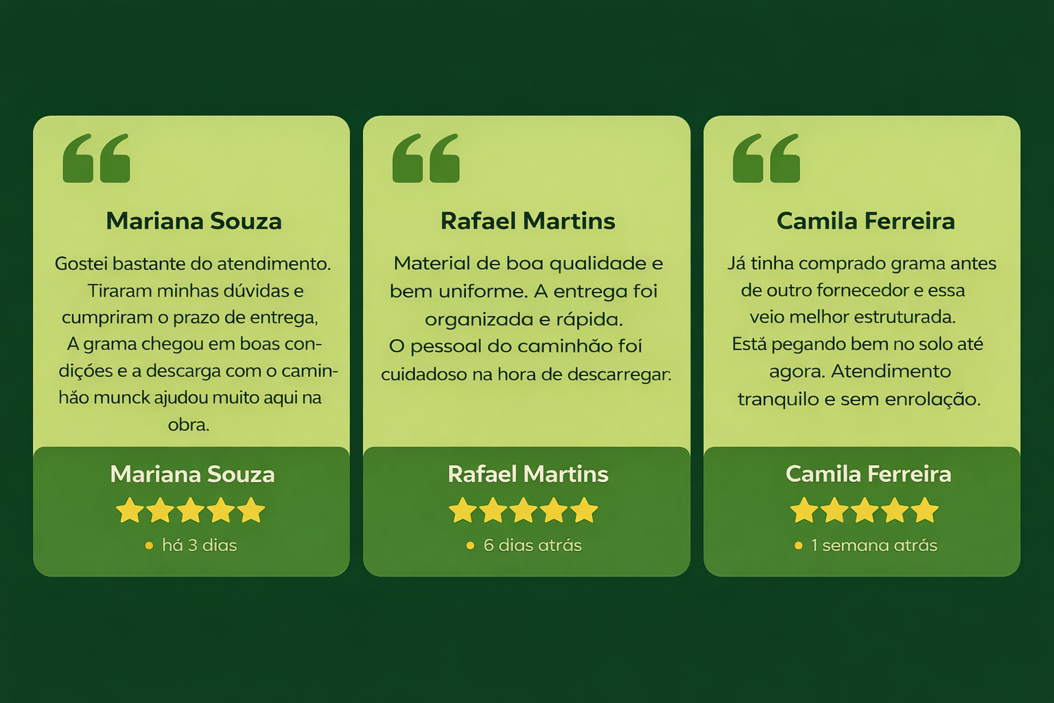 Grama esmeralda fresca, pronta para entrega em qualquer quantidade.